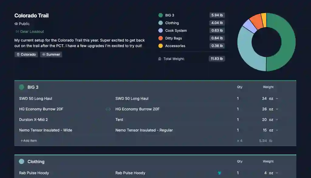 Save your favorite gear setups from other hikers & backpackers and discover new gear.